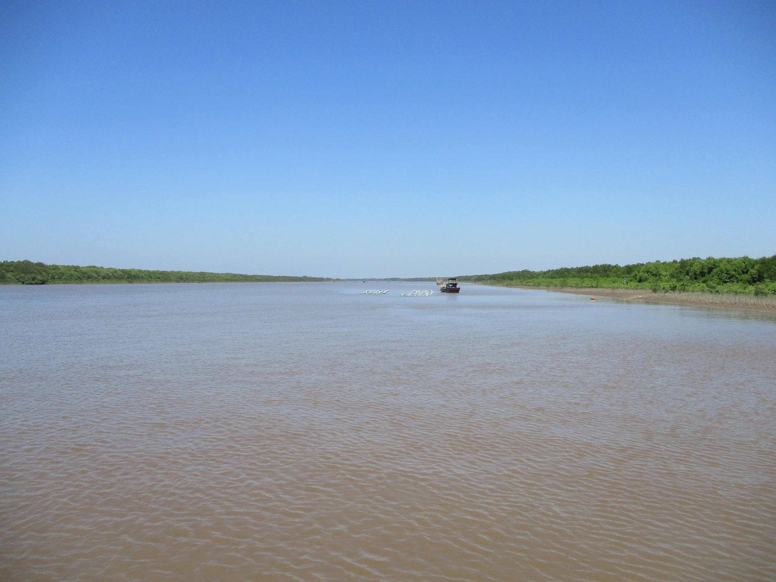 The boundary between land and sea is failing in the Mekong Delta. These former rice paddies are too salty now for rice, and are being remade as shrimp farms. The main cause, so far, is ground subsidence, not global warming. South Vietnam is very vulnerable to climate change.