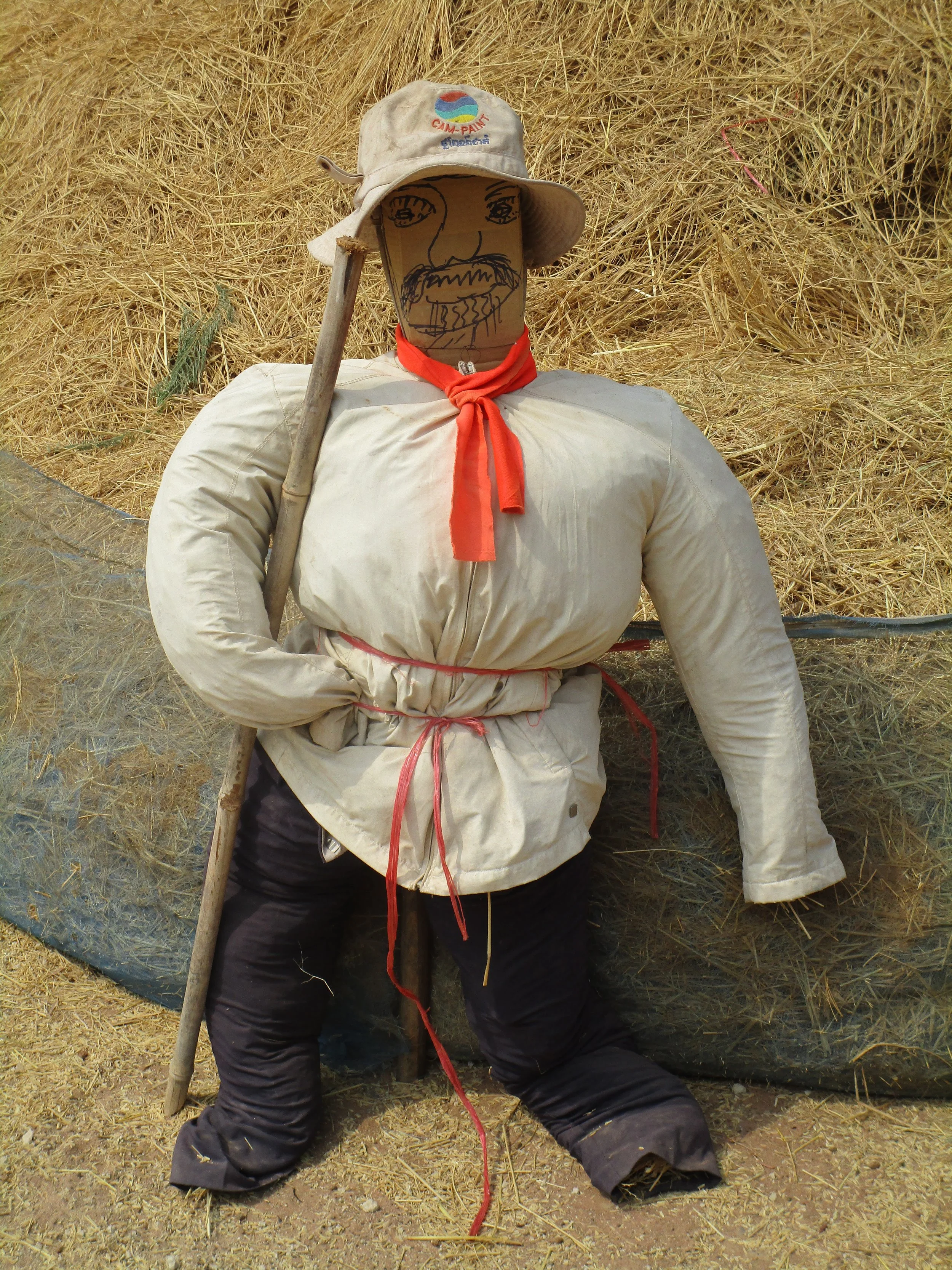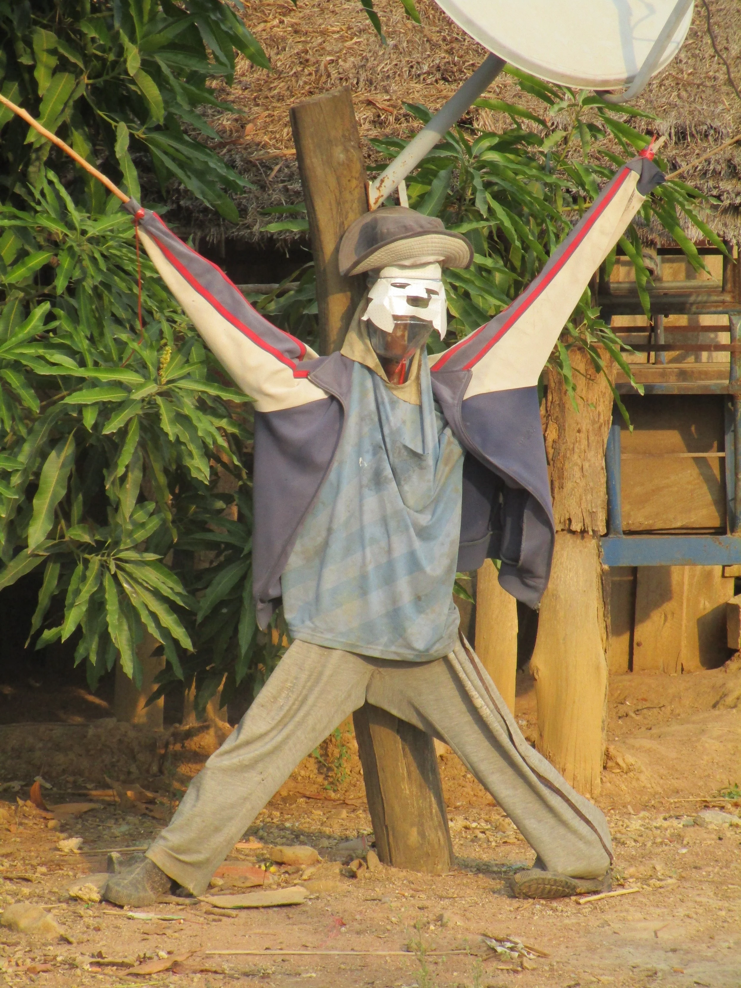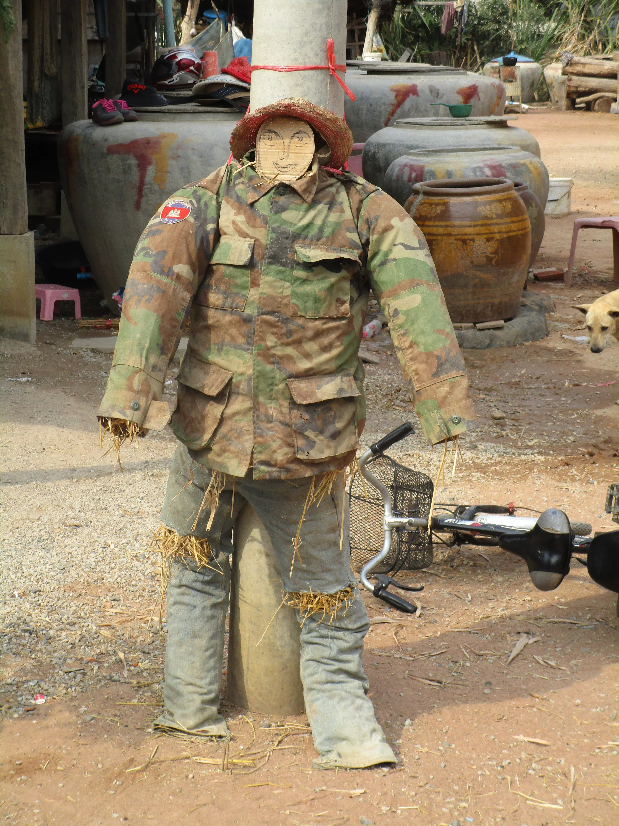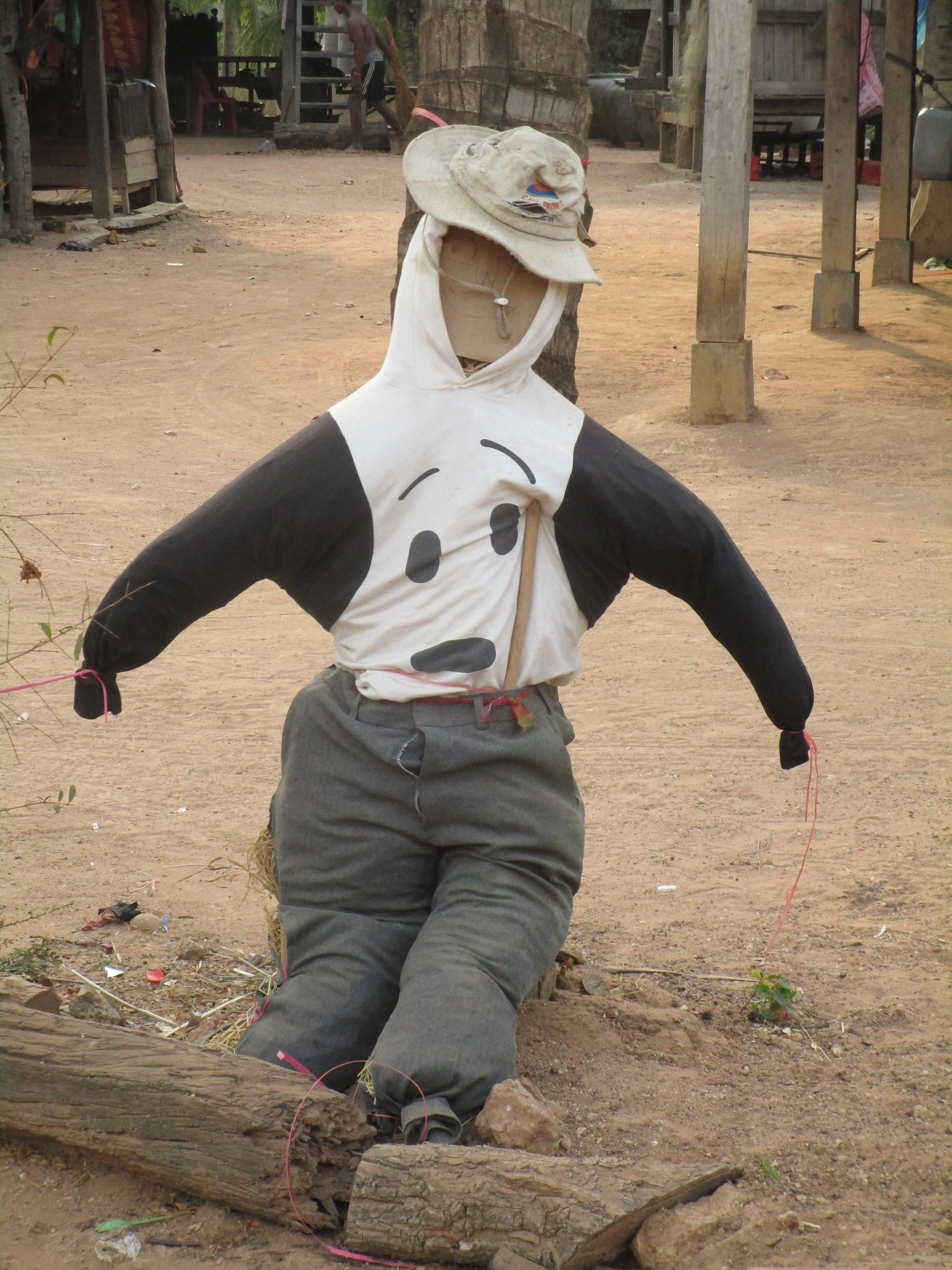 In January 2020, before Covid locked down the world, I went to Bantheay Chmaar, in Northern Cambodia. This was January 21st, 2020. I found the village, a tiny place, full of scarecrows. But these were not meant to frighten birds. That job was done by plastic bags on sticks. No, these were meant to ward off the new disease. Three young men has come back from Bangkok, weeks before, and died of a new disease. Except, their elders said they had seen it before, and the elders did not catch it.