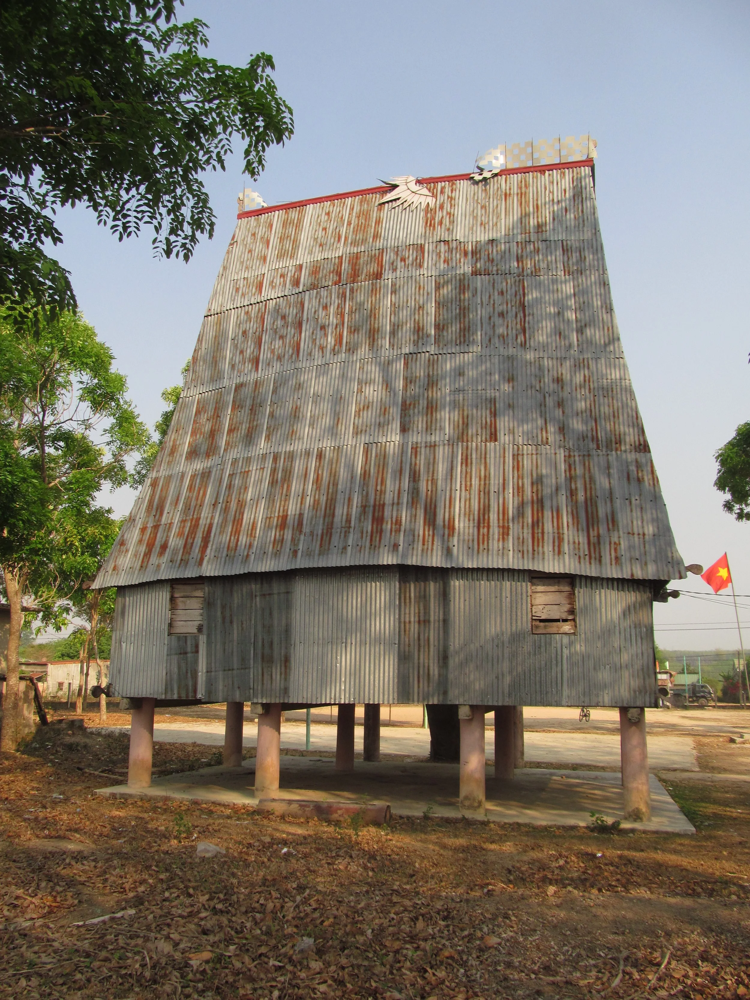 The Bahnar have an older traditon, of village houses or rong. These are amazing buildings, originally thatched but now sometimes metallic, built tall as a form of passive air conditioning.